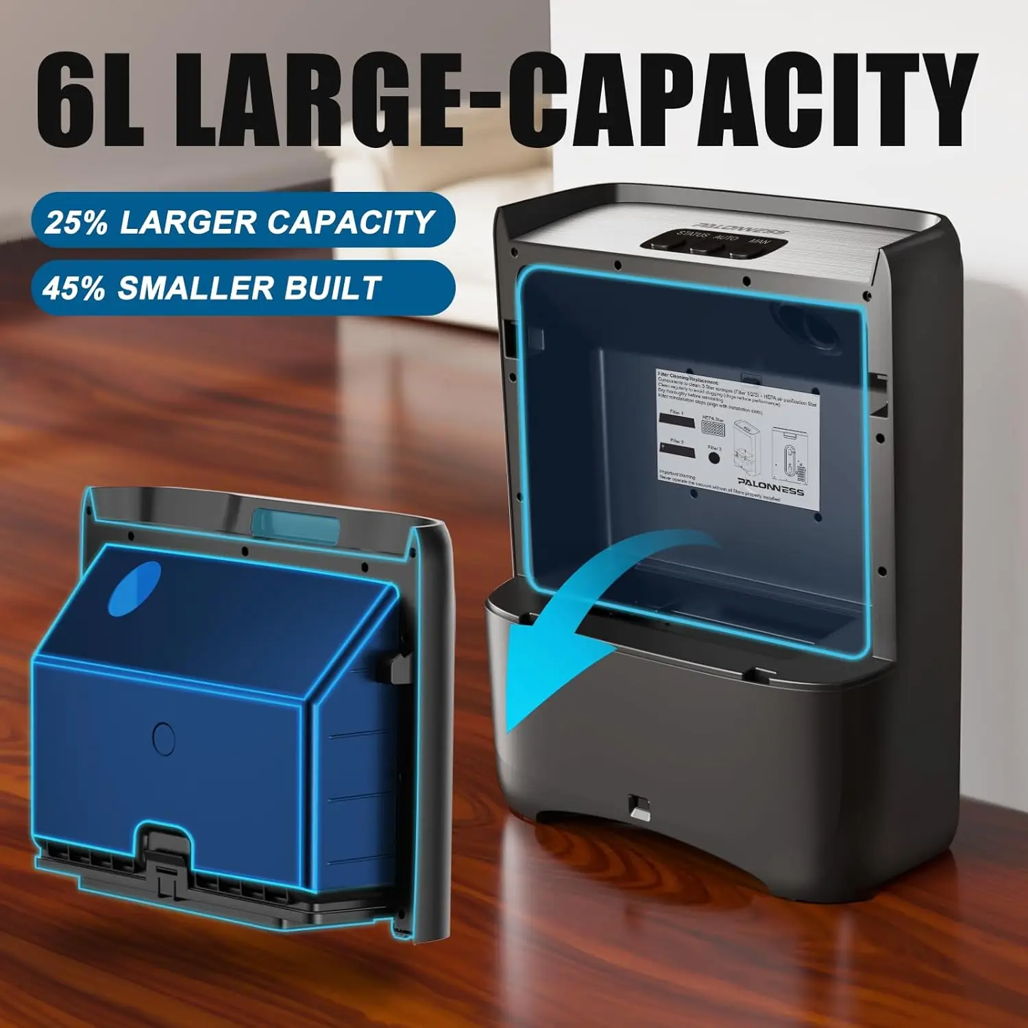 No more bending, no more chasing dust, and definitely no more messy cleanup. With built-in motion sensors, this sleek dustpan automatically activates the moment debris is swept toward it, instantly pulling in dirt, crumbs, pet hair, and dust with powerful suction. Just sweep it close… and watch the mess disappear.